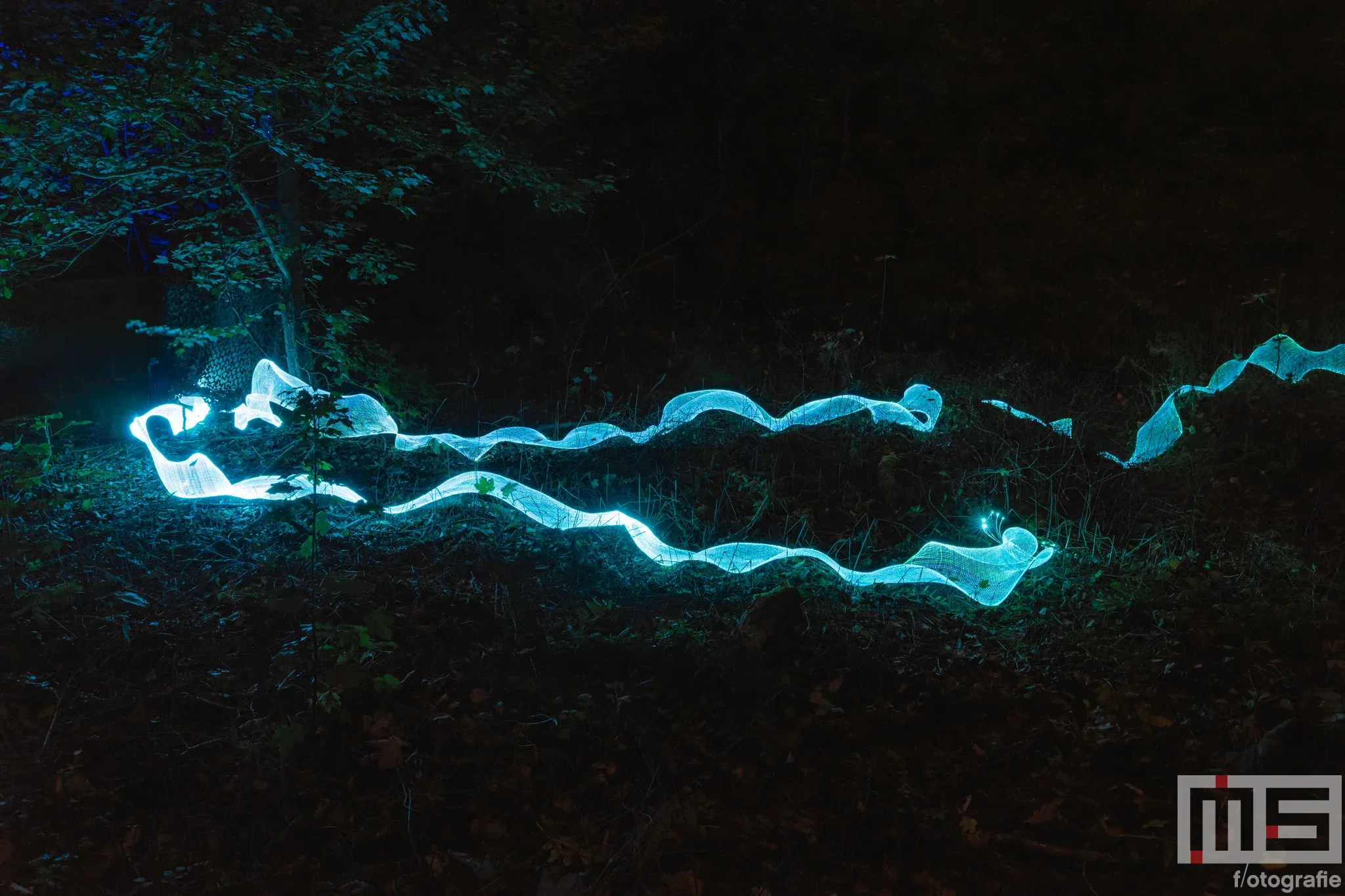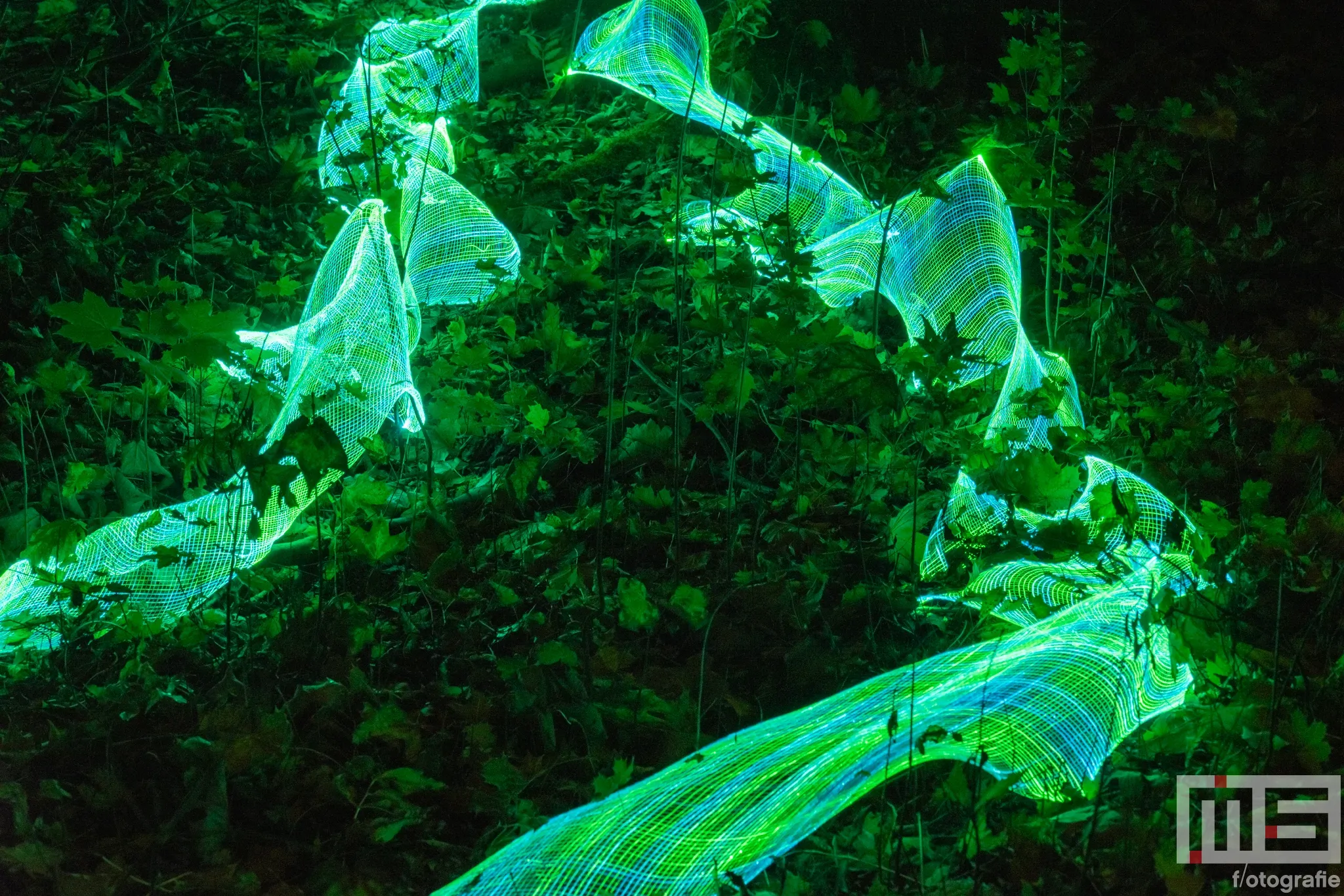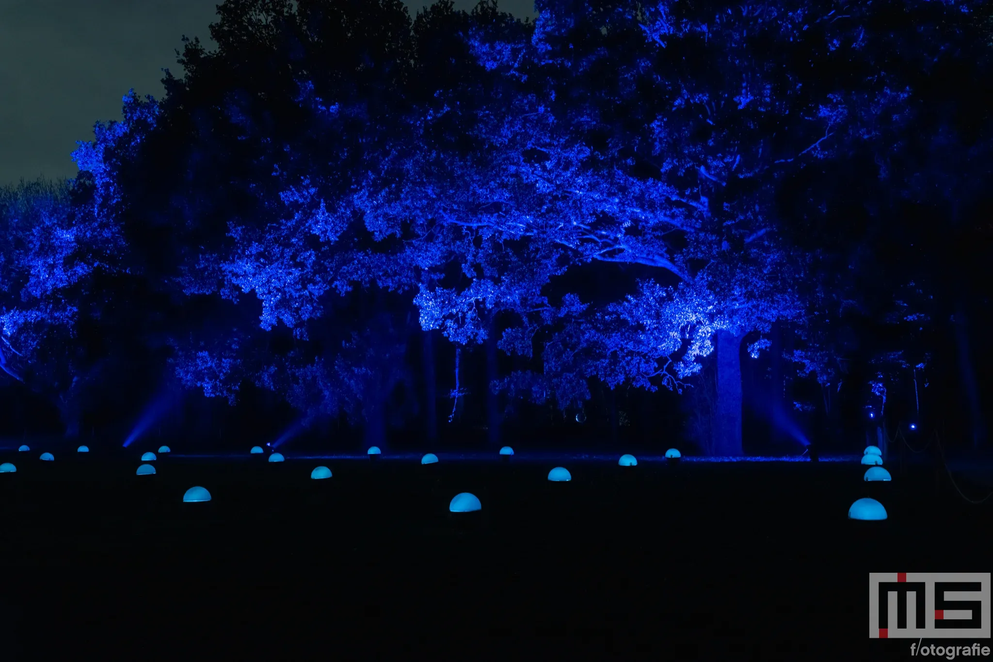 Dit jaar valt meteen het grote veld met de paddestoellampen op. Bij elk galopgeluid van een voorbijrazend paard springen de lampen aan en uit, alsof het bos zelf meebeweegt met het ritme van het dier. De bijna 1000 blauwe lampjes in de bomen aan het einde van de route vormen een adembenemend schouwspel dat bezoekers stil doet staan. Daarnaast zijn er dit jaar diverse projecties zoals een zoomende libel en diverse ogen. Het is een sprookjesachtige ervaring en voor velen een van de hoogtepunten van de wandeling.