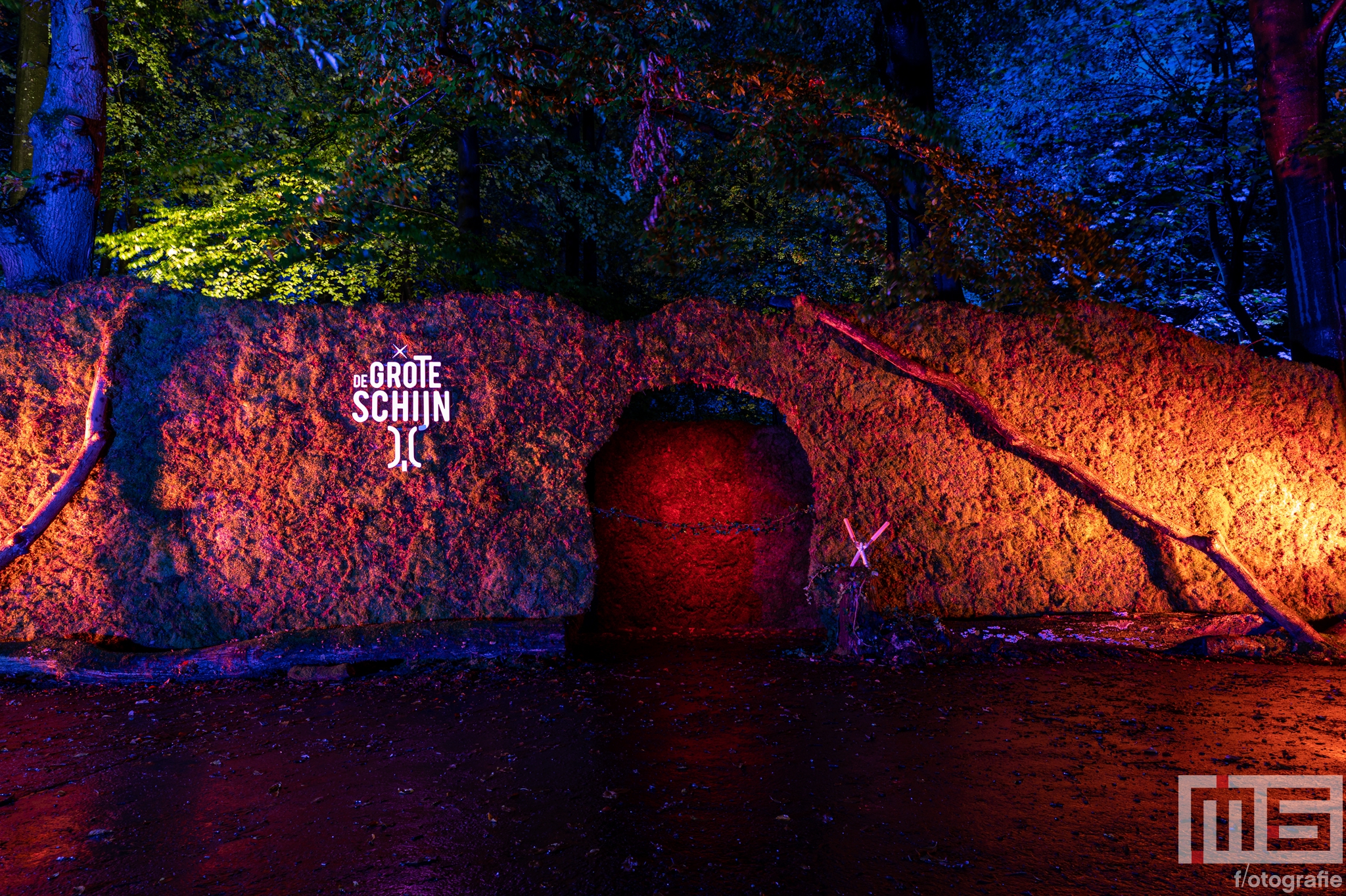 Het is de tekst wat op de website van De Grote Schijn staat wat ons bij MS Fotografie natuurlijk trekt naar dit evenement. We willen dit met eigen ogen zien of het bos echt tot leven komt. Ook of je in een wereld van Alice in Wonderland terechtkomt, zoals als de maker bij de opening verteld. Even na 19.30 uur stappen we richting de ingang waar loco-burgermeester Bert Wijbenga met een grote heggenschaar het natuurlijke lint doorknipt en iedereen welkom heet.