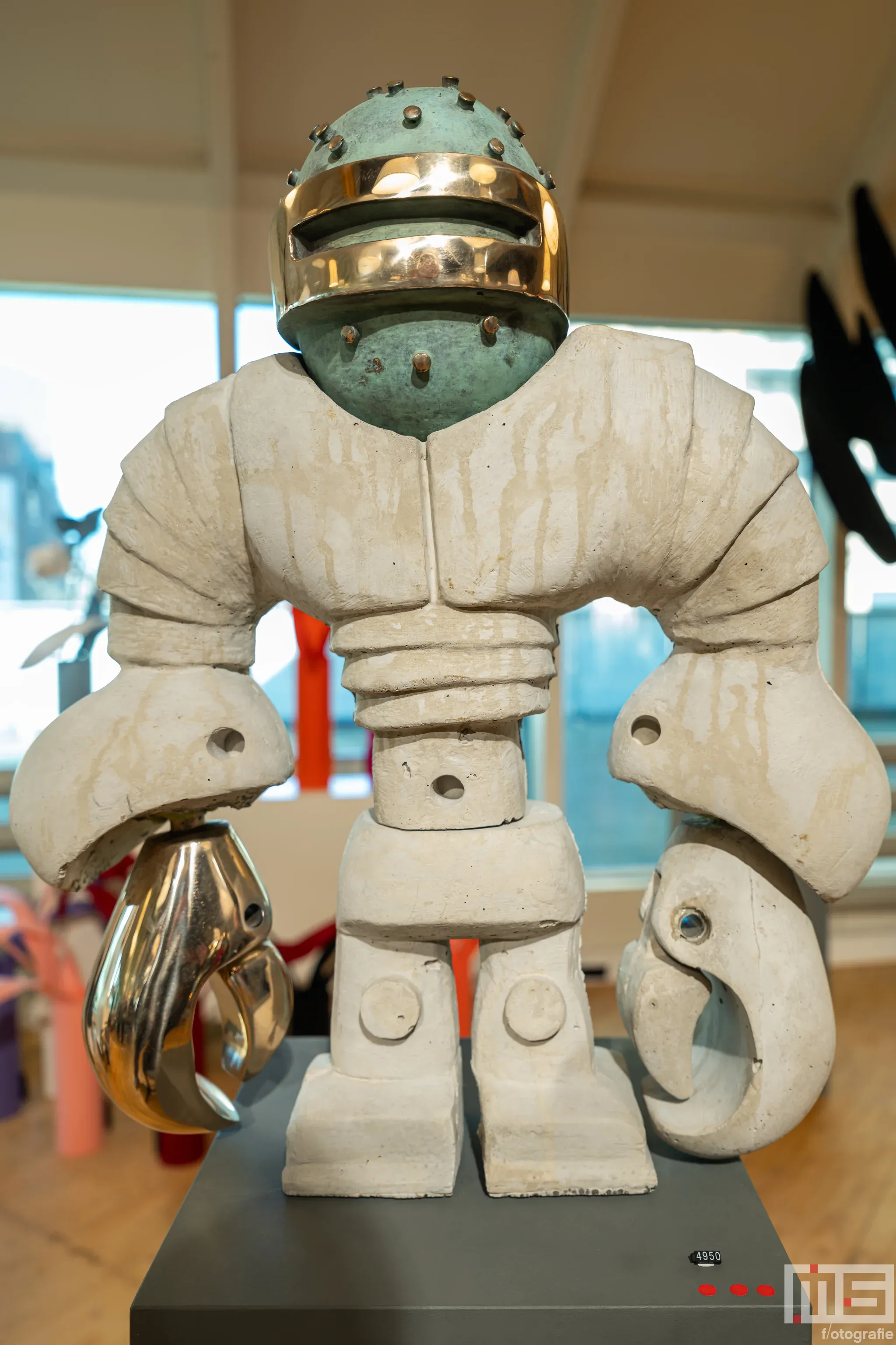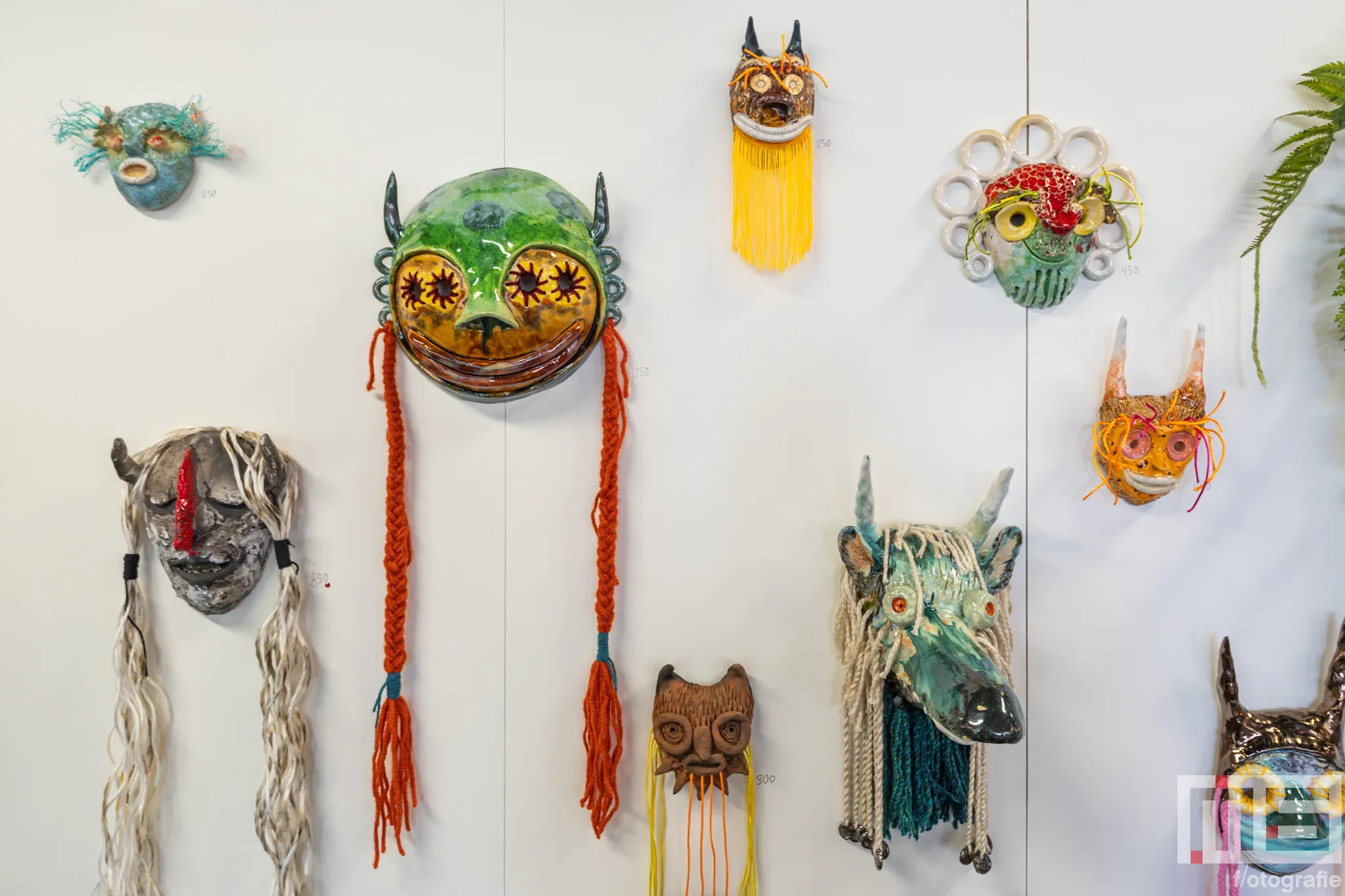 Op de tweede verdieping en hoger kwamen we Sjaak Kooij tegen, die we eerder op verschillende kunstbeurzen hadden gezien. Hij staat bekend om zijn expressieve maskers en sculpturen die sterk tot de verbeelding spreken. Even verderop, bij Rademakers Gallery, viel de textielkunst van Sofie Aaldering op door haar opvallende presentatie.