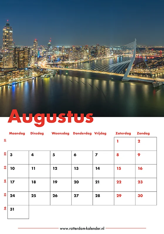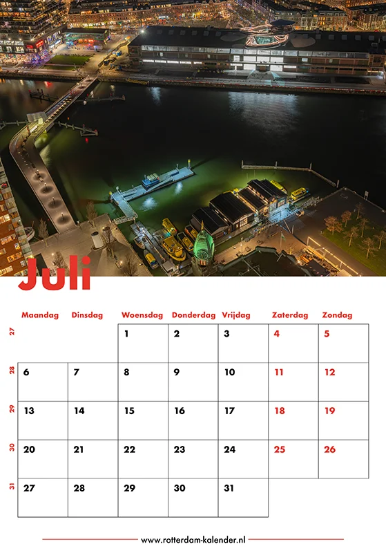Elke maand wordt er in de kalender een prachtig gedeelte van de wereldstad Rotterdam belicht door onze professioneel stadsfotograaf Marc van der Stelt. Een overzicht van de foto’s in de kalender vind je hieronder en zijn tevens te koop in onze shop.