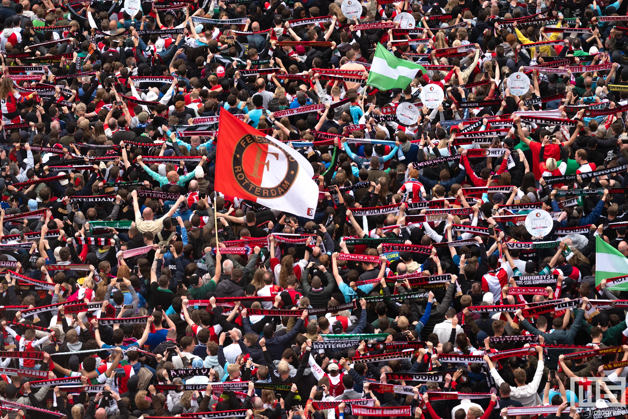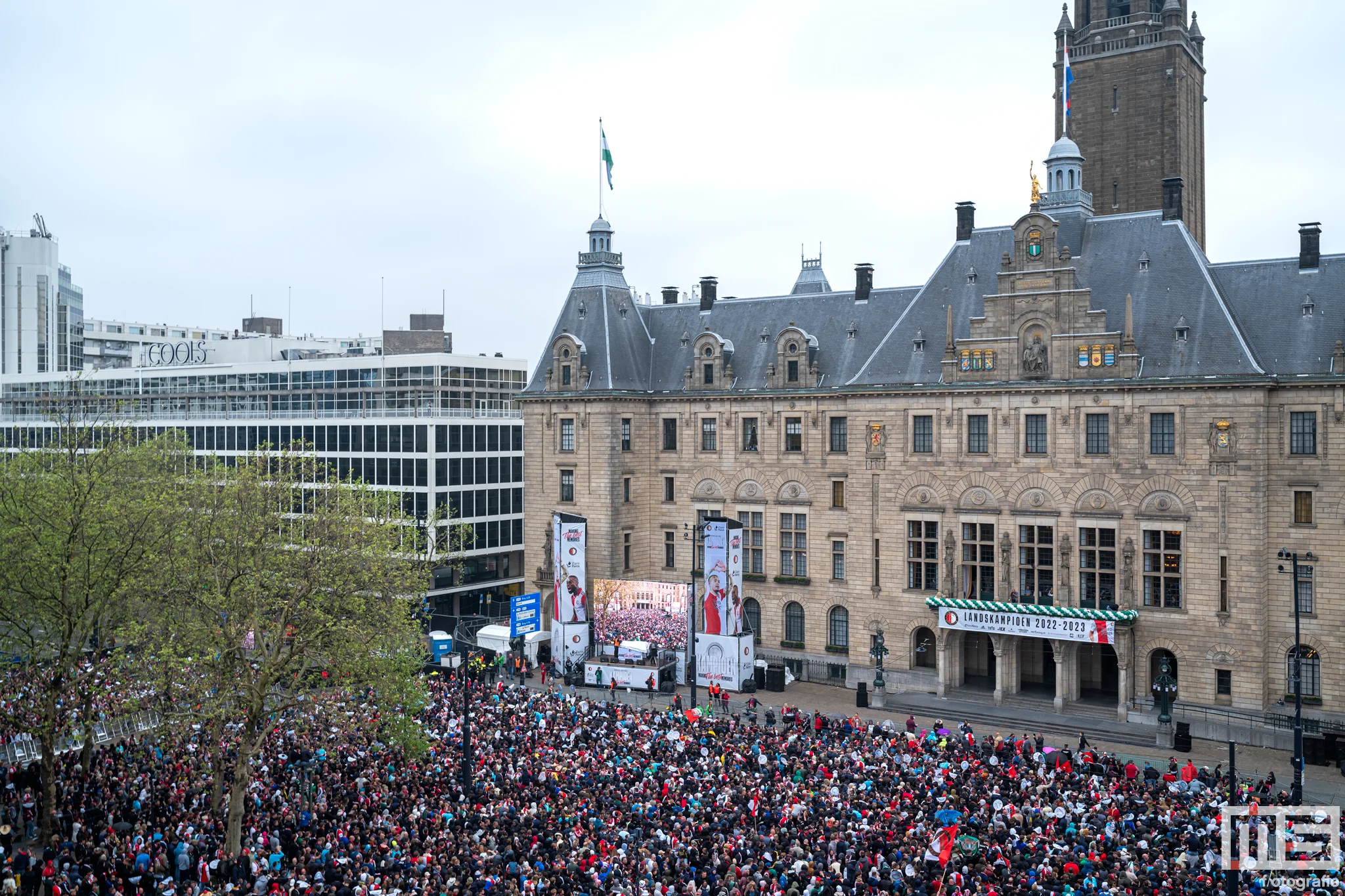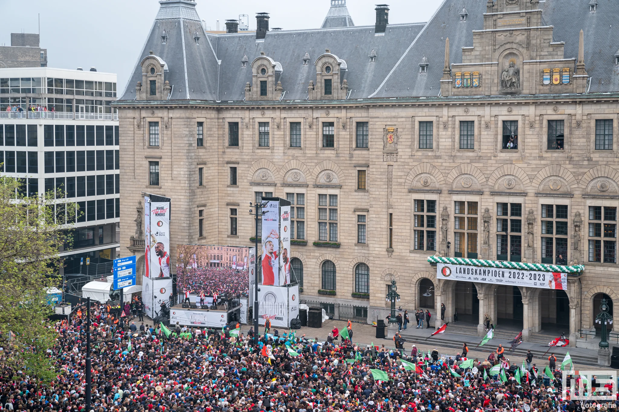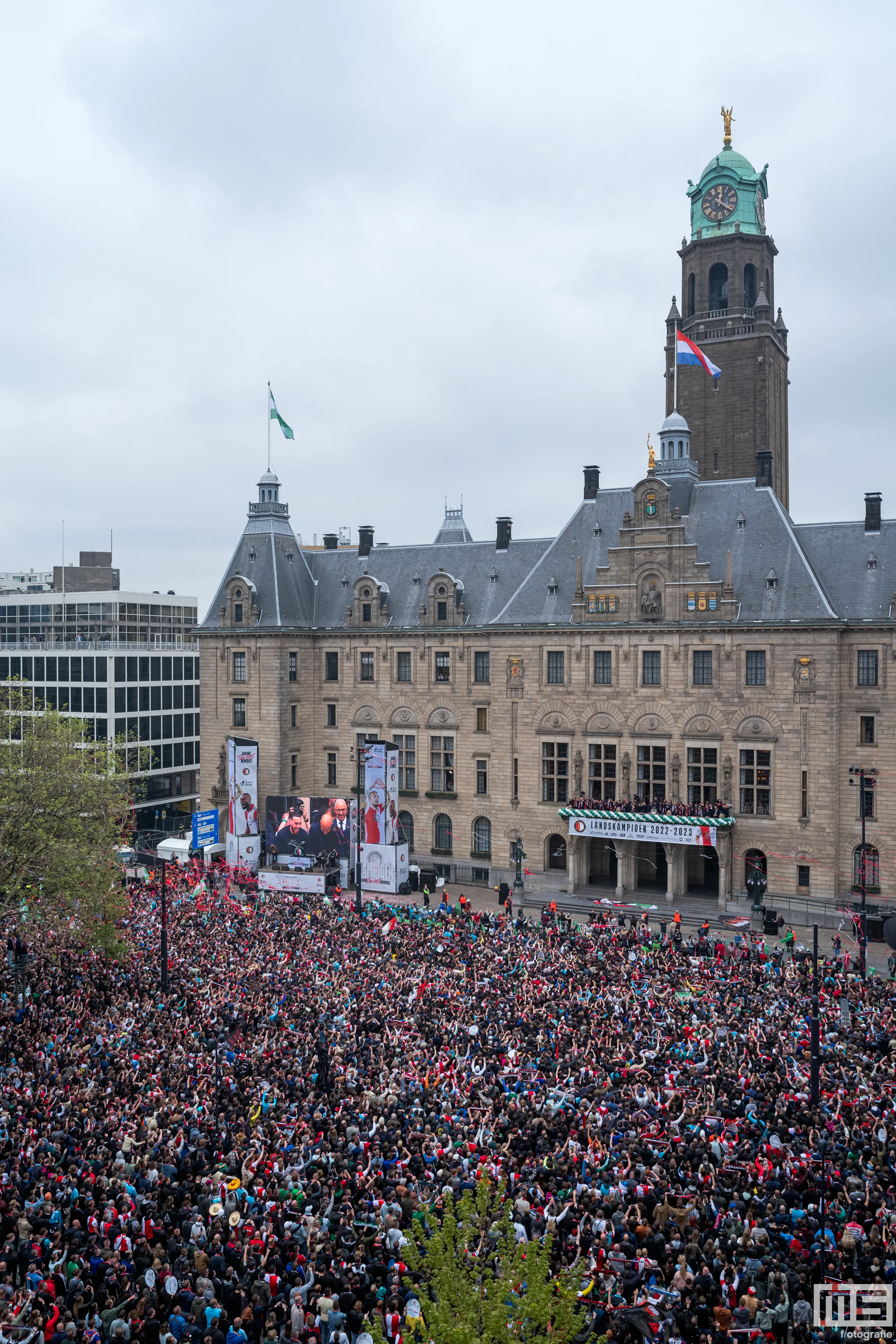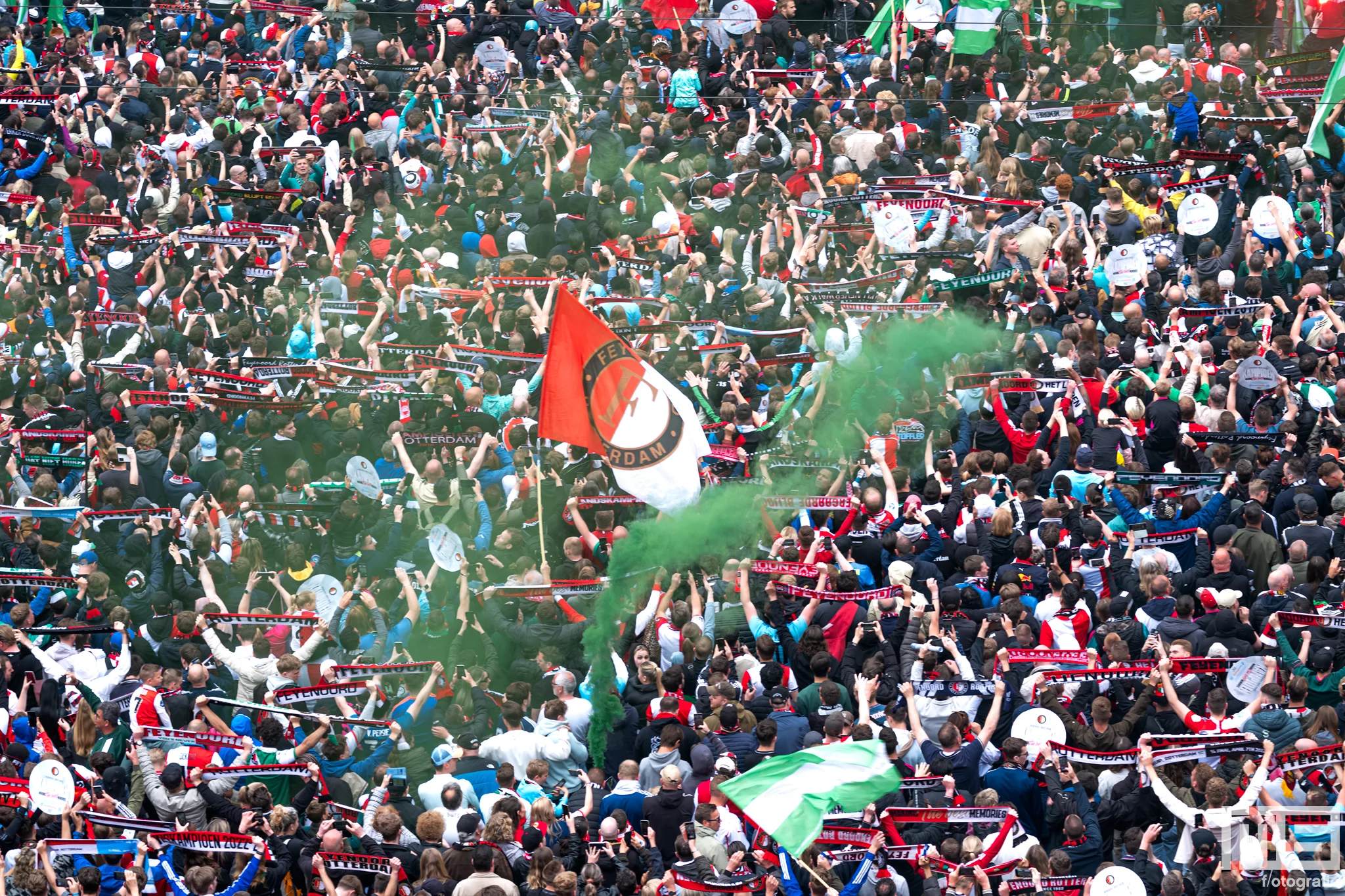 Het Stadhuis van Rotterdam en de Coolsingel is uiteraard ook het punt van samenkomst voor diverse grote vreugdevolle volksuitingen. De kampioenschappen van Feyenoord zijn hier onder andere altijd gevierd en bij schitterend weer ook een stukje verderop in de fontein op het Hofplein. Wij waren er uiteraard in 2017 bij voor een fotoblog toen Feyenoord voor de laatste keer landskampioen werd.